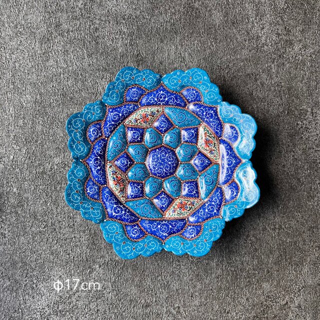 ペルシャのエナメル皿(ミーナーカーリー)飾り皿 Φ17cm 壁飾り【MINA KARI 017-016】