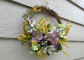 春待ちリース その名の通り春を運んで来る様な可愛い花々で作られており素敵なリースでした。