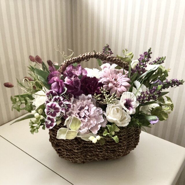 優しい色のフラワーアレンジメント (造花、LLサイズ、1点もの、母の日、敬老の日、結婚祝い)