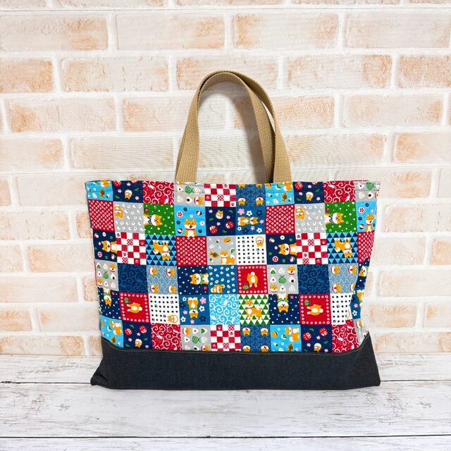レッスンバッグ(裏キルト) 【和柄・パッチワーク柄×柴犬】