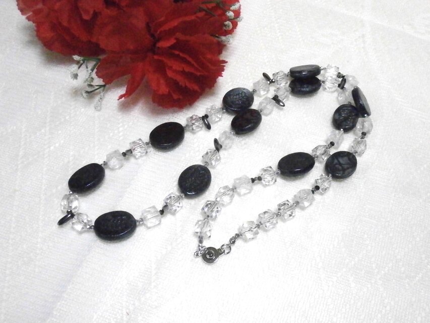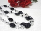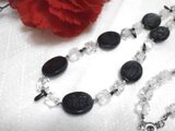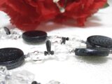 ・メタリックブラックの細長いガラスビーズをアクセントに、、、