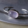 透明感のあるクールなピンクが魅力的なモルガナイトをシルバーバングルに仕立てました。