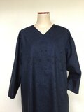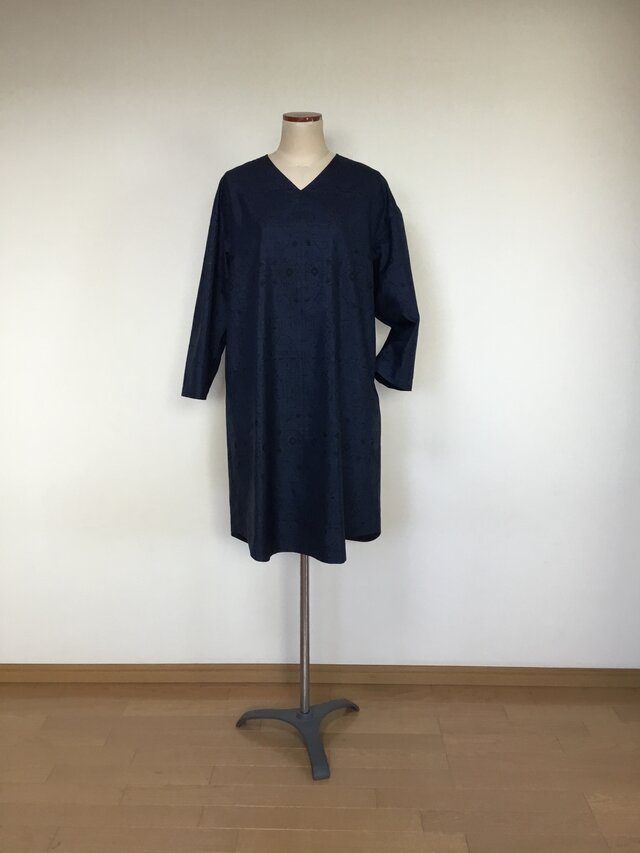 柄のある紺色の大島紬からワンピースを仕立てました。