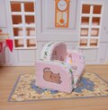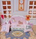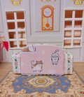 猫のイラストが可愛いピンクのミニチュアソファセット。