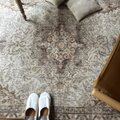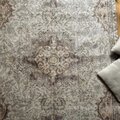 大判141×263メダリオン 春色クリーム×グレイ トルコヴィンテージラグ