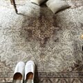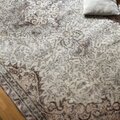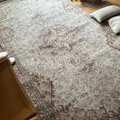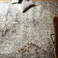 クリーム色をベースに淡いサーモンカラーとグレイがやさしく溶け合う、トルコヴィンテージラグ。