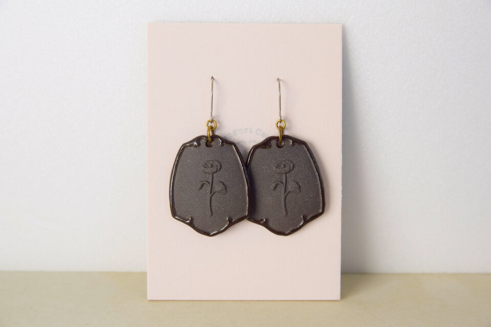 アンティークな印象のプレート中央に一輪の花を浮き彫りにしました。
