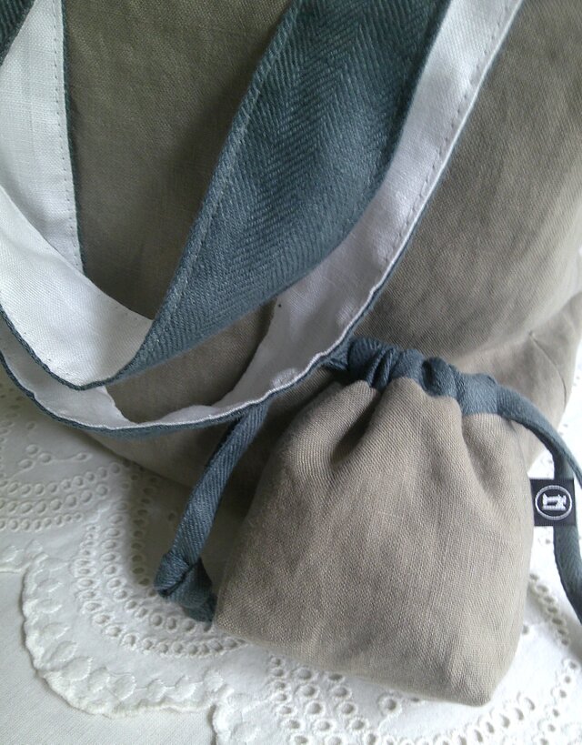 リネンのトートバッグと巾着ポーチです。
