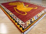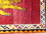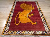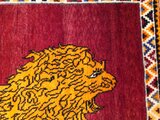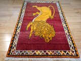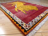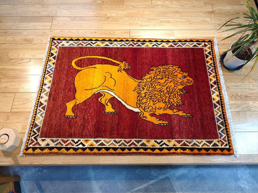 ペルシャ オールドギャッベ アマレバフト ラグ 118x83cm 茜色 黄金色 ライオン RJ976