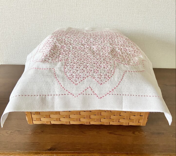 刺し子♡ふきん(桜・アレンジ)です