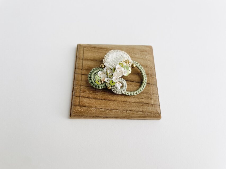 【2個セット 縁ーenー】手刺繍 軽いつけ心地のブローチ LホワイトとSシルバーb012作品が届きました。繊細な刺繡とガラスビーズ、思っていた通りステキです。 いろいろな組み合わせができそうで、楽しみです。 ありがとうございました。