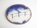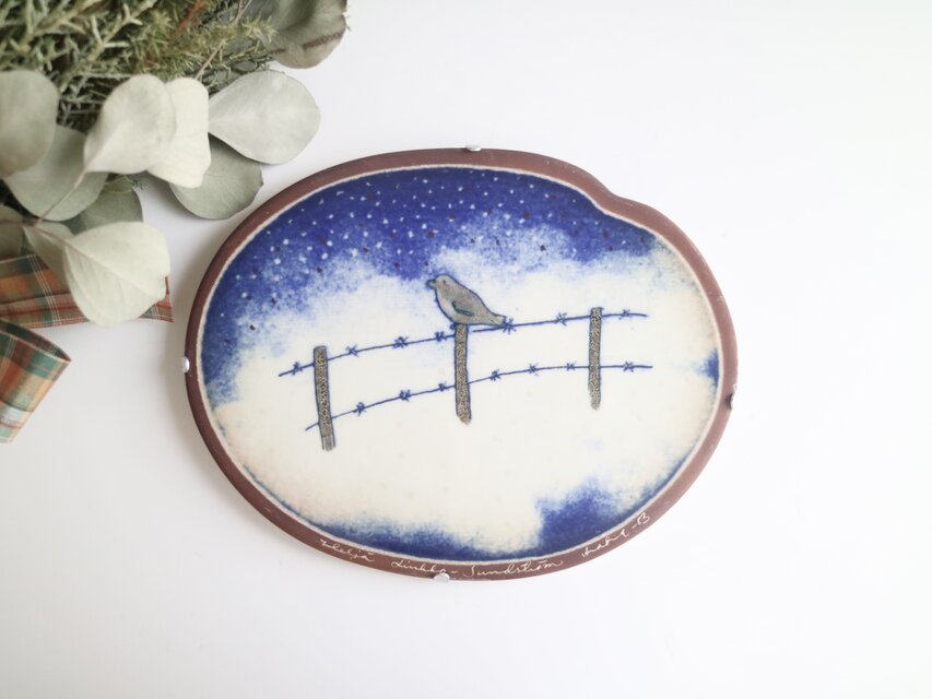 ARABIA社製 Heljä Liukko-Sundström(ヘルヤ・リウッコ・スンドストロム)がデコレートデザインした陶板です。タイトルは「Varpunen(スズメ)」