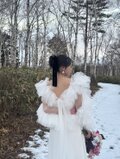 実例写真!ウェディングドレス トップス+キャミソール パール 細見えシルエット 可愛い 拳式/前撮り