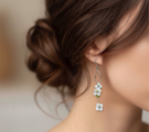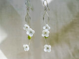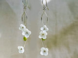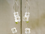 白い花とペリドットのロングピアス|日本製ガラス×スターリングシルバー