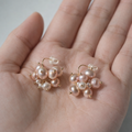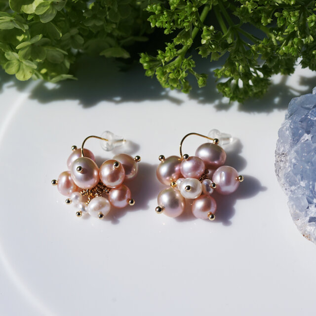 天然色真珠によるコケモモの花のピアス・サージカルステンレスフックピアス ~Lingonberry flower