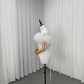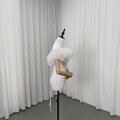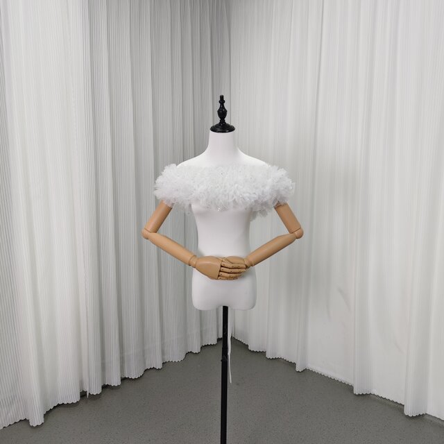 オフホワイト 取り外しオフショルダー 編み上げ キラキラチュール ラッフルフリル 結婚式