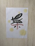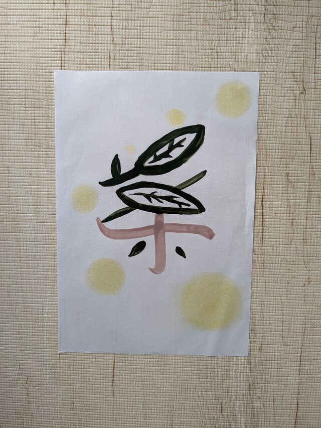 葉の周りにある黄色の丸は、春の太陽が優しく草木を照らしている光を表現しています。