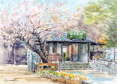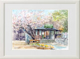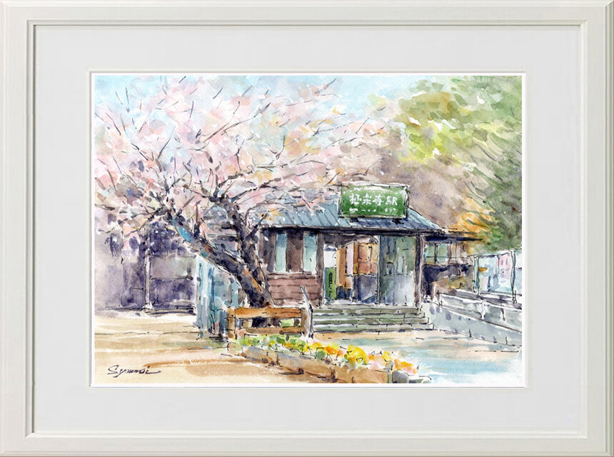 水彩画原画 桜・江ノ電極楽寺旧駅舎 #726