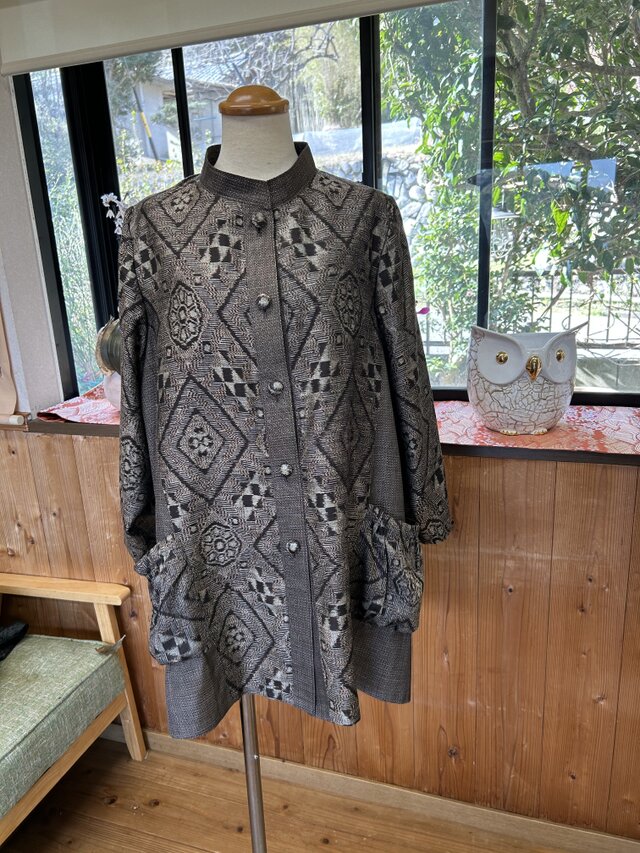 女性の大島紬柄~男物紬の組み合わせでジャケット