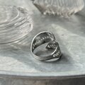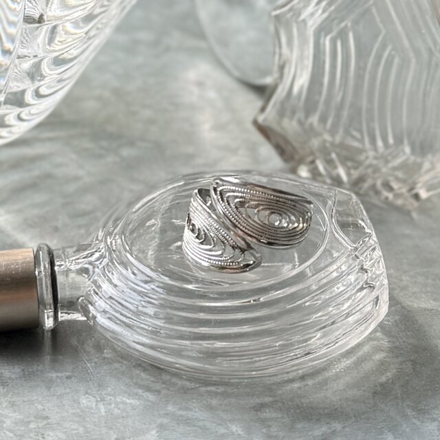 ジオメトリックなデザインの細かな透かしのフィリグリー。指を巻き付ける仕様で、サイズ調整が可能なアジャスタブルタイプ。