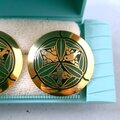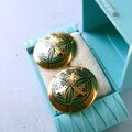 ゴールドトーンのラウンドに鳥とリーフが描かれた七宝焼のヴィンテージピアスです。