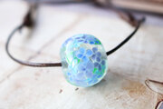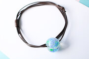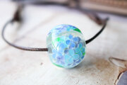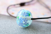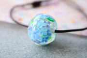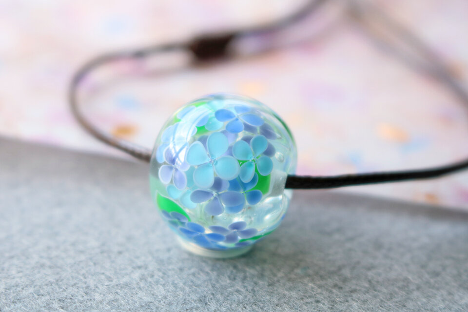泡を入れた透明の地に、紫陽花を咲かせたとんぼ玉です。