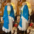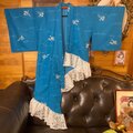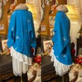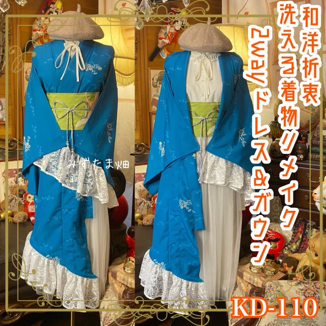 【単衣着物 2way ガウン 羽織り ドレス ワンピース ハンドメイド 和洋折衷 洗える 化繊 リメイク 帯サッシュベルト レトロ 古着 縹の深淵 × 幻想の花々 KD-110】
