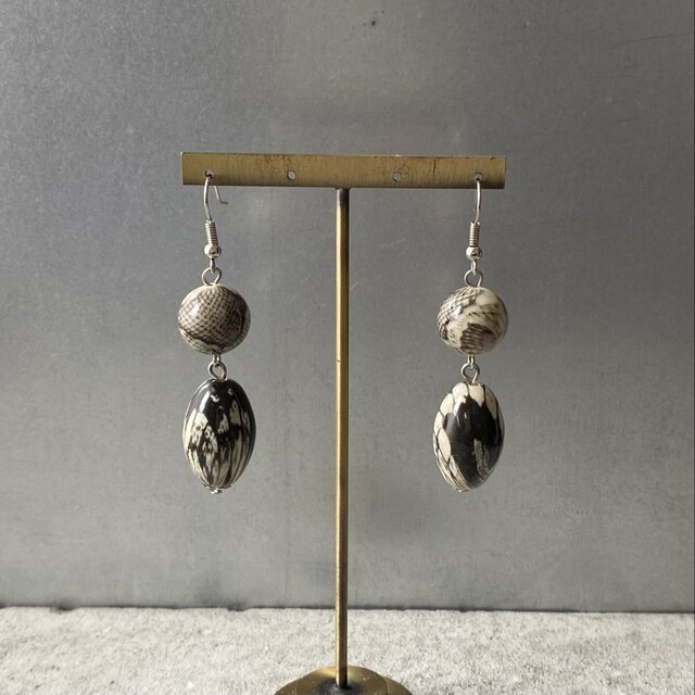 スネーク柄のビーズがお洒落なUSAヴィンテージピアス。揺れるたびに存在感を放つ個性的なデザイン。古着やユニセックスなスタイルにもおすすめです。