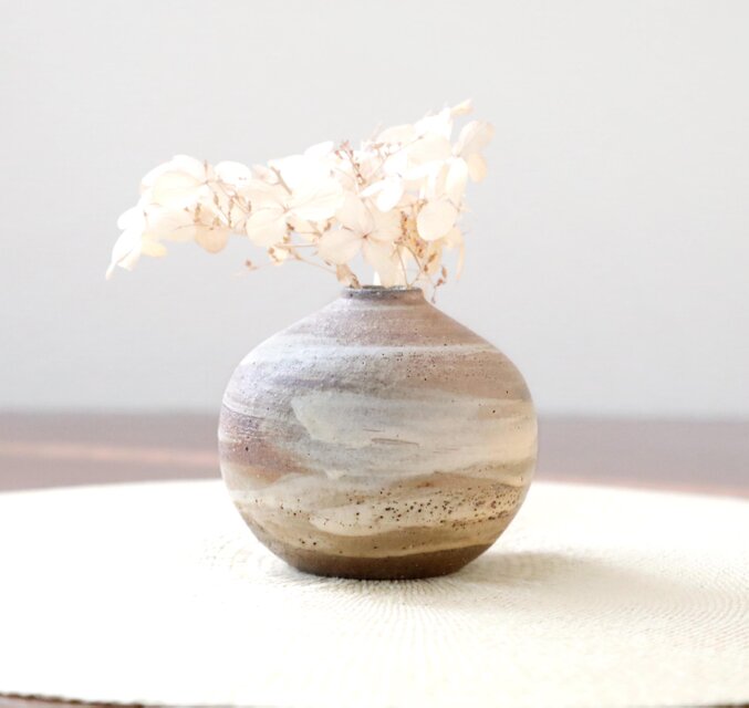 【薪窯焼成】赤陶土と白化粧刷毛目のふっくら一輪挿し