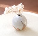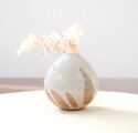 土物らしさを感じられる荒めの白陶土を使用し、白い釉薬を流しがけして自然な模様を施した一輪挿しです。