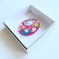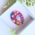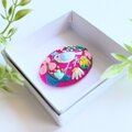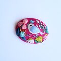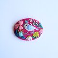 フューシャピンクのリネンコットン地に、ことりと小さな草花を丁寧に手刺繍しました。