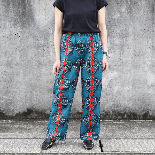 ★新作 アフリカンプリントのイージーパンツ( ストレートシルエット )アフリカ布パンツ