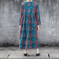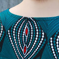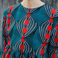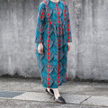 ★新作 アフリカ布のワンピース(ピーコックブルー)サイドポケット付き!ベーシックワンピース アフリカンプリント