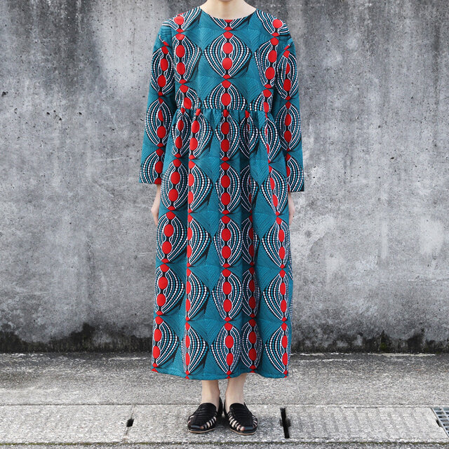 アフリカンプリントで仕立てたシンプルで上品なワンピース