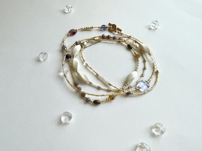 優しいホワイトとパープルのビーズ達。