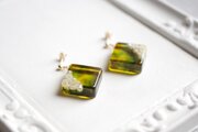 レジンアート スクエアピアス〈蜜蜂の求愛〉