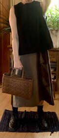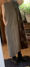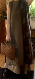 後ろ見頃は前身頃より広めにとって絣生地をたっぷり使い作っていますが後ろ肩袖左右にのタックを入れていますのでスッキリしたデザインになっています。