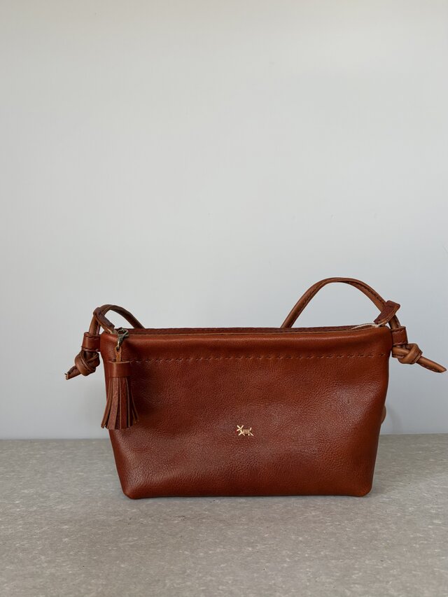 硬すぎず、柔らかすぎずのとっても扱いやすい鞣し革を使って、全て手縫いで仕上げたシンプルポシェット。