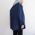 落ち着いたネイビーカラーと木綿素材の組み合わせにより、日常に取り入れやすい一着に仕上がっています。