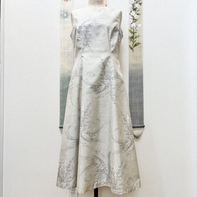 その美しい絹の布地に新たな命を吹き込み、洋のドレスとして生まれ変わったのが、このプリンセスラインのワンピースです。