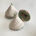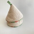 ストラップ付きで使わない時は引っ掛けられます。重ねてお鍋の蓋の持ち手に乗せておいても可愛いです。