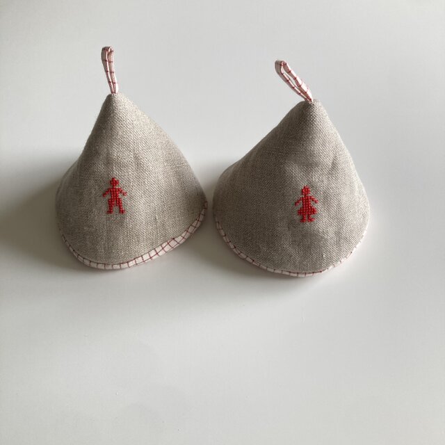 三角鍋つかみ2個セット*クロスステッチ*男の子と女の子