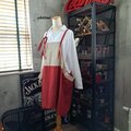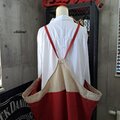 リネン×レッドの切替デザインエプロンが出来上がりました。