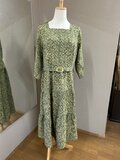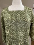 小紋の長着よりスクエアネックの優しいワンピーススカート部分は横布使用ギャザーを3段にしてとても可愛くエレガントなデザイン色合いもこれからの季節映える抹茶グリーン系オシャレ