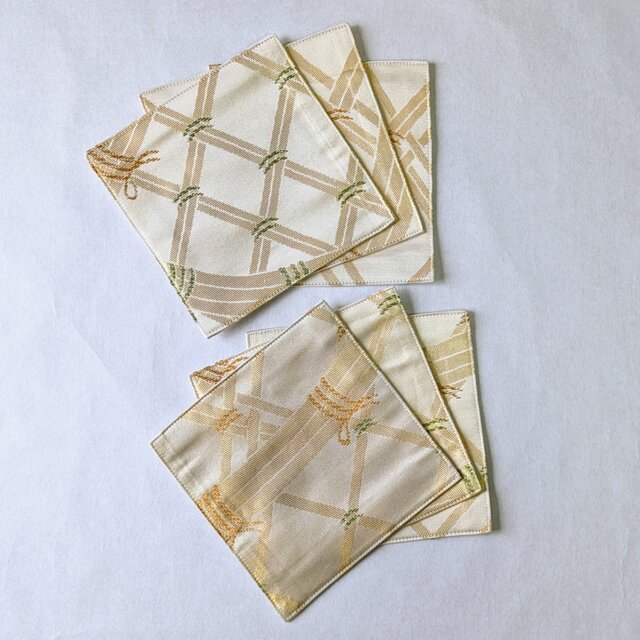 籠目文様が金糸で刺繍された帯をリメイクしてコースターを作りました。