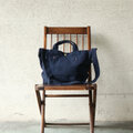 お客様の声からできた、横型トートバッグ。A4サイズが横向きに入り、手提げでも肩がけトートでも使える二種類の持ち手がついています。