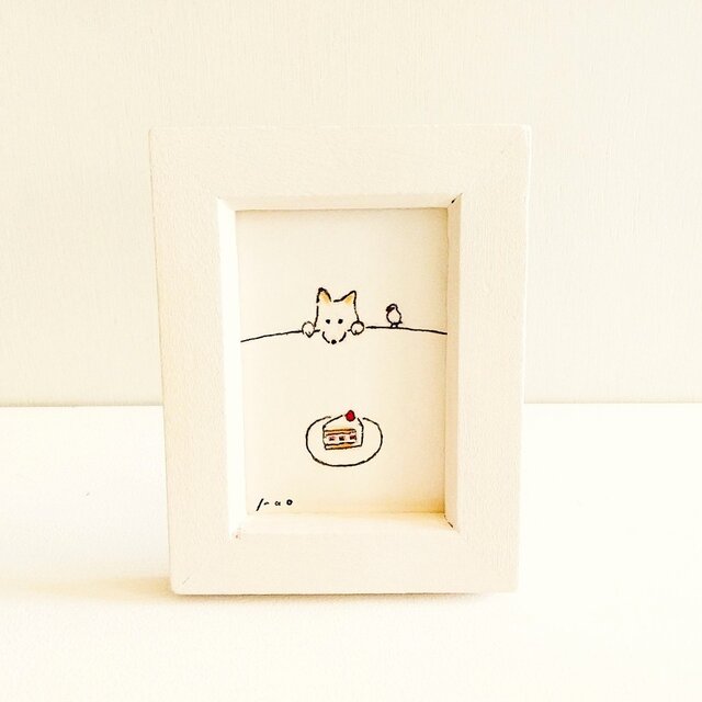 インテリア インテリアアート イラスト イラストレーター アナログイラスト ミニ額縁 シンプル ナチュラルインテリア ギフト 水彩 水彩画 リラックス ミニ原画 原画 犬 犬の絵
