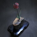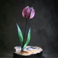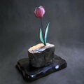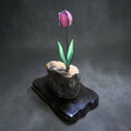 流木の台座から、その先に咲くのは、やわらかな桃色のガラスで形作られたチューリップの花。