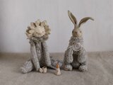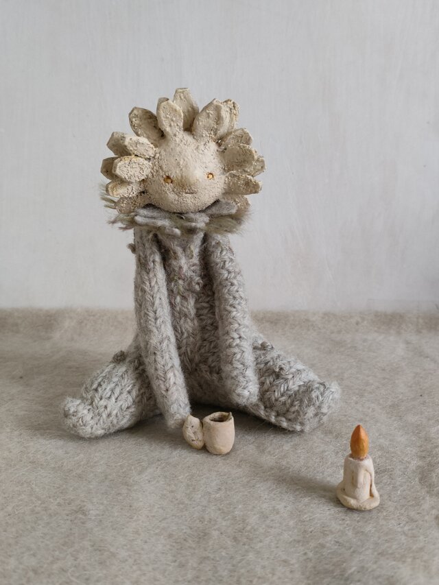 ボディ(国産メランジ毛糸/英国羊毛入)、ポリ綿、木材(芯材)、ウールフェルト、刺繍毛糸