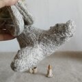 毛糸をメリヤス編みしてからフェルト化したのを、布同様に縫い合わせ。